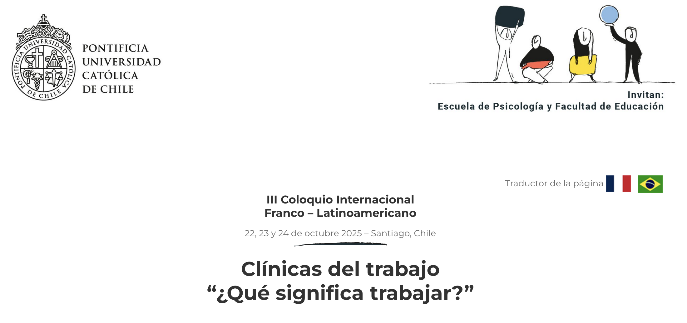 22, 23 y 24 de octubre 2025 – Santiago, Chile Español Después de los encuentros internacionales de La Habana (Cuba) en 2018 y de Joao Pessoa (Brasil) en 2022, los días 22, 23 y 24 de octubre de 2025 se celebrará en Santiago de Chile el III Congreso internacional Francia-América Latina “Subjetividad y trabajo”. Su […]